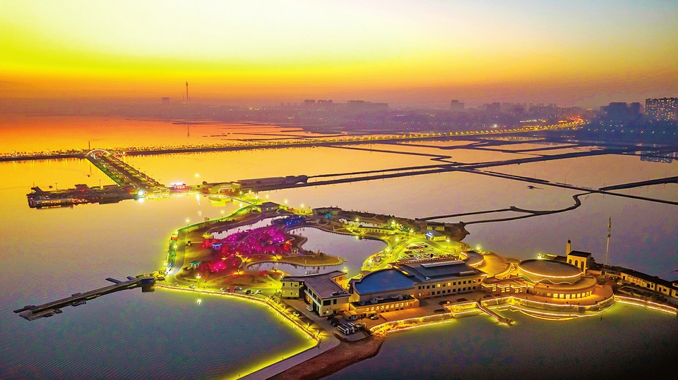 成為游客休閑游玩好去處。 燈火璀璨映鹽湖
